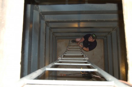 Själva klättrandet ner i bunkrarna sker vida en skranglig flyttbar stege och ett litet hål i golvet, och om det är något jag är lite sur på min salig far för så är det att han sparade bort dom koniska bottnarna som hade varit enkla att montera i byggnadsskedet och som hade sparat bort allt detta klätterelände
