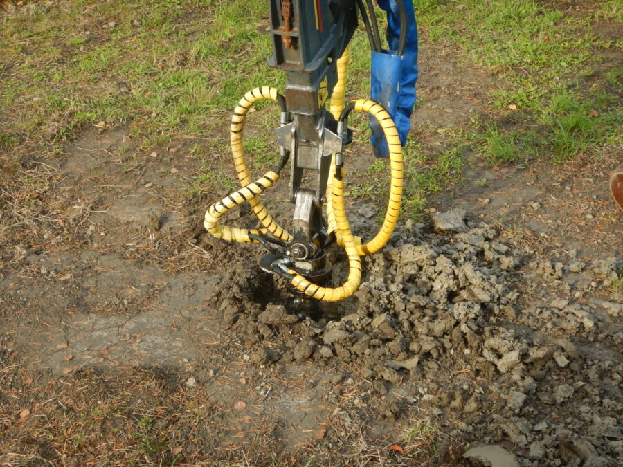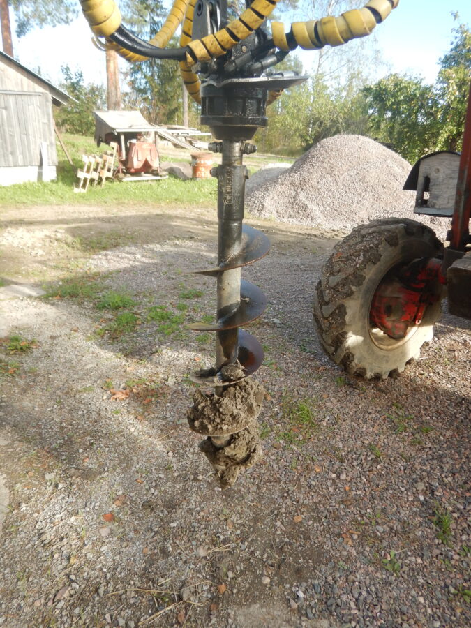 En jordborr krökte jag eftersom leran var så hård. Till all tur hade jag köpt flera borrar så jag bytte och borrade försiktigare. Visst hade det varit lätt på våren men då hade nog alla odjuren ätit upp de planterade äppelträden.