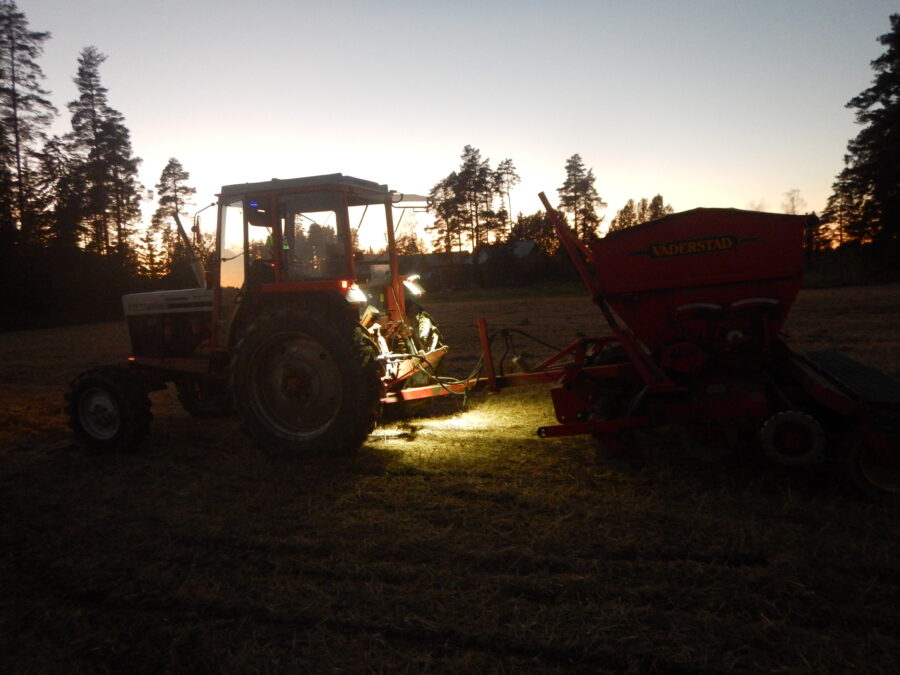 Det blev långt men jag har inte haft tid att skriva tidigare. Nu börjar maskinerna vara undansatta och det är verkstadsarbete som väntar. Möjligen också litet byggarbete om vädret det tillåter. Jag skulle sätta upp en dörrskena bakom uthuset förra veckan men fyra dagar försökte jag och varje gång började det regna vilket inte är så trevligt då man måste stå i takdroppet. På lördag skruvade jag upp skenan fastän det regnade då också.