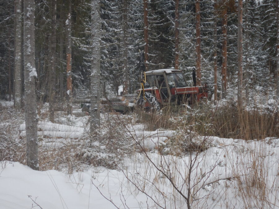 Det var länge varmt (och blött) men till nyåret kom det en ordentlig kyla – som ser ut att fortsätta ännu länge. Jag hann inte riktigt få alla traktorerna i skick med det varma vädret men visst är man glad över kylan. Tyvärr så kom det en del snö så vi har kört upp spår flera gånger om. Med -24 grader på morgonen borde det nog ge ordentliga skogsvägar.