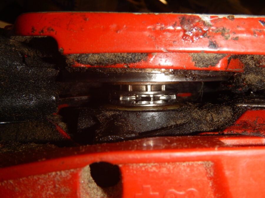 Jag är litet sur på lösa drivhjul för det går lätt att få sågkedjan bredvid och det märker man inte genast förrän den slitit ned räfflorna. Inne i verkstaden går det bra att se efter men ute i skogen med snö, kyla och mörker kan det lätt bli problem. Jag förstår inte varför drivhjulet skall vara så smalt att sågkedjan lätt hamnar bredvid …